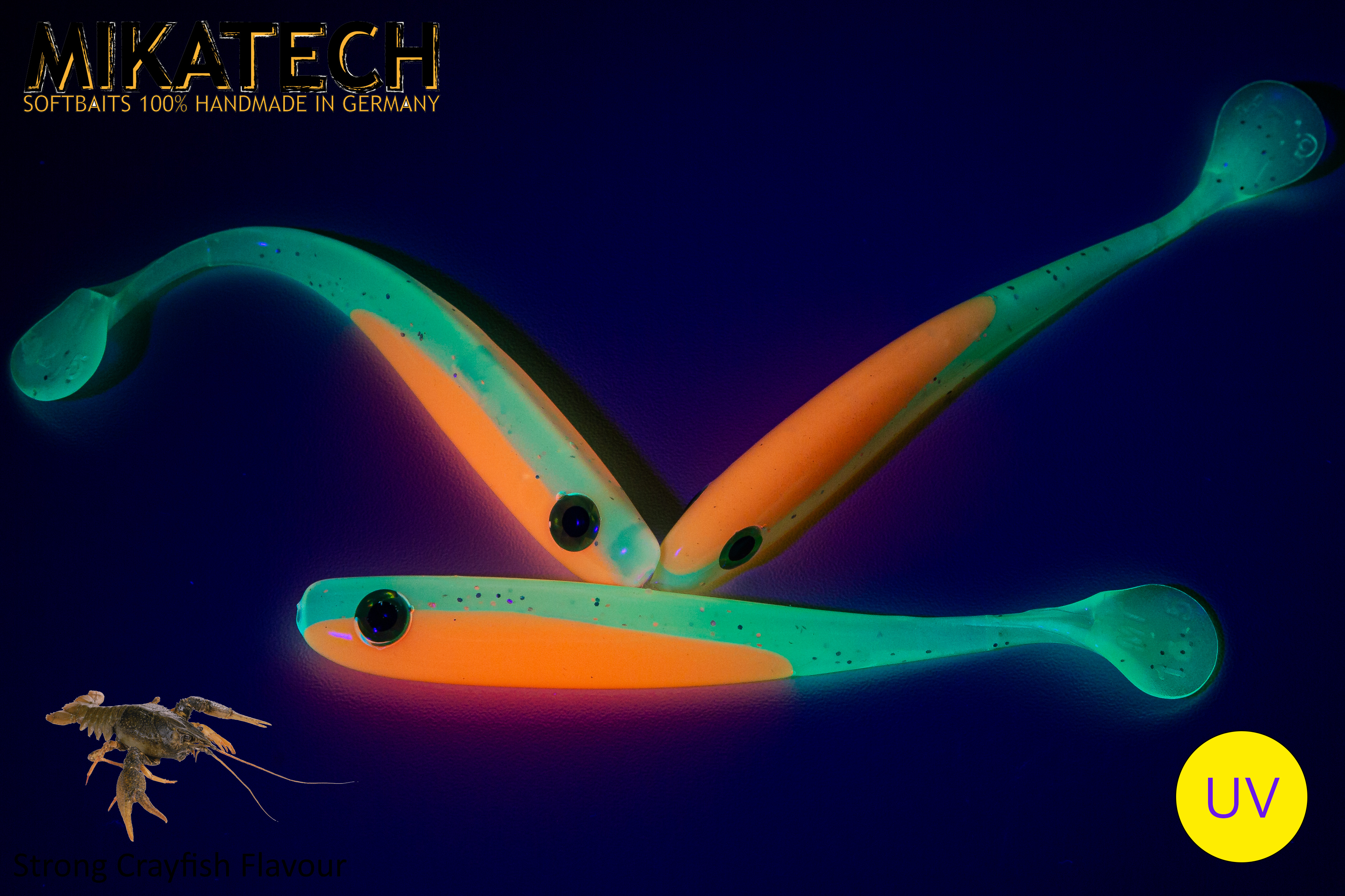 Der Real Shad 12,5 cm ist ein von uns von Hand gegossener Zander- und Barschgummi der Manufaktur MIKATECH, Duisburg. Die Verarbeitung und Haltbarkeit lässt keine Wünsche offen. Mehr als 10 gefangene Zander oder Barsche auf einen Real Shad sind keine Seltenheit! Das eingegossene Flusskrebs Aroma sorgt dafür, dass die Fische auch schon aus grösserer Entfernung den Köder durch die "Ölspur" des ölhaltigen Shrimparomas besser wahrnehmen können und ihn beim Biss länger im Maul behalten, bevor sie ihn wieder ausspucken. Besonders für Anfänger ein grosser Vorteil, da sie länger Zeit haben den Anhieb zu setzen. Durch die spezielle weiche Gummimischung kann der Real Shad unglaublich einfach durch Barsch und Zander eingesaugt werden. Zudem ist unser Material toxikologisch unbedenklich und Made in NL.