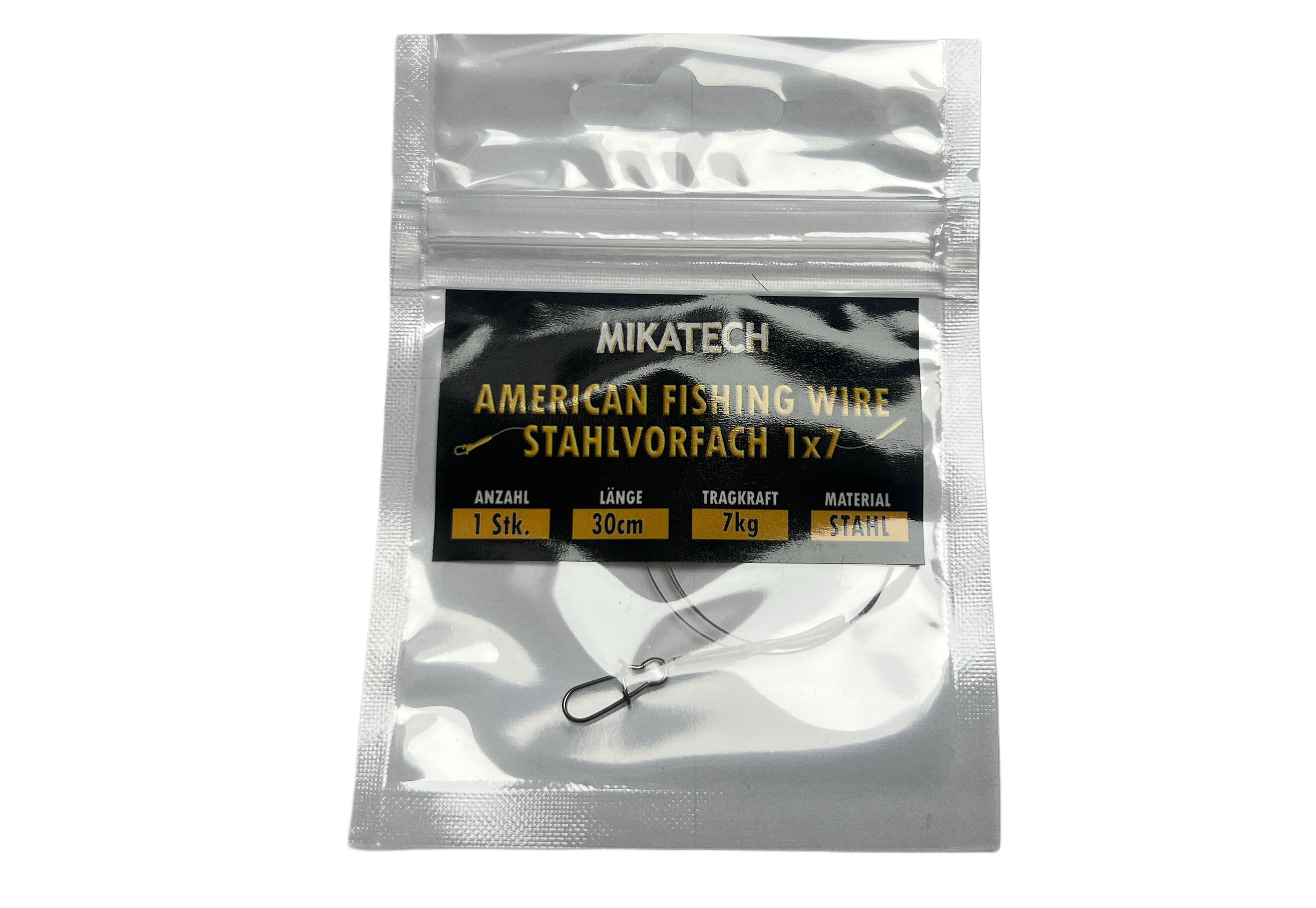 MIKATECH American Fishing Wire 1x7 30cm 7kg Tragkraft mit stärkerem Profi Blinker Snap
