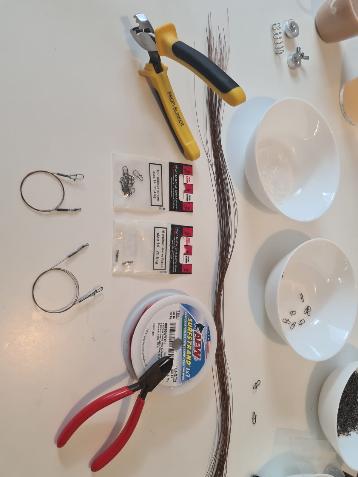 Wir quetschen von Hand aus Einzelteilen von AFW diese hochwertigen stärksten geflochtenen Stahlvorfächer der Welt für Euch. Das 1x7 Stahl von American Fishing Wire ist für mich das beste auf dem Markt! Zusätzlich wird noch über die Quetschungen Schrumpfschlauch verarbeitet. Die verwendeten Quetschhülsen sind Made in Germany (Profi Blinker). Der Snap ist von Profi Blinker und bietet eine wahnsinnige Tragkraft von 12kg bei kleiner Größe. Wir empfehlen diese dünne Stärke, wenn es zum Barschangeln verwendet soll, aber ab und zu mit Hechten zu rechnen ist.